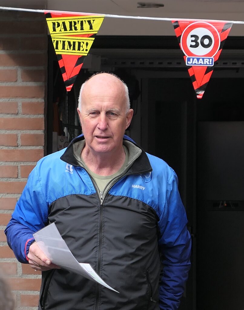 Op 26 maart bestond onze loopgoep 30 jaar. Dat is op zondag 19 april gevierd. Rond 10.30 uur verzamelden een dertigtal lopers zich bij het huis van Crista en Harry Kuipers, dat niet toevallig huisnummer 30 heeft. Na een warming-up met opzwepende muziek startten de deelnemers in drie groepen aan een jubileumloop door het dorp, daarbij keerde het getal 30 steeds terug. Bij zes posten moesten loopoefeningen 30 keer worden uitgevoerd en ook moesten 30 vragen over de geschiedenis van de loopgroep worden beantwoord. Dit kostte de groepen de nodige hoofdbrekens en de discussies over de antwoorden leidden tot veel hilariteit.
